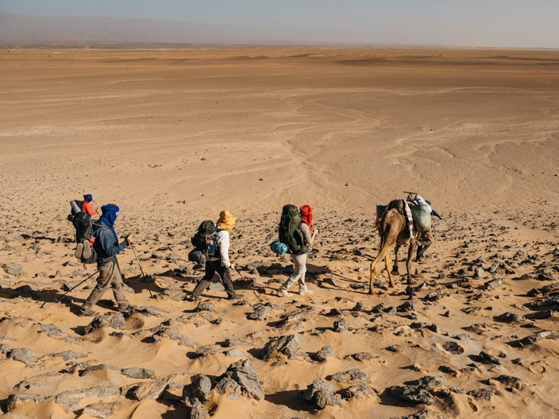 After breakfast, we'll set off with the camel caravan in the direction of the nomadic school for a 3-hour walk. We'll meet the schoolchildren, have lunch and set up our bivouac to spend the night with the nomads, dining under the stars.